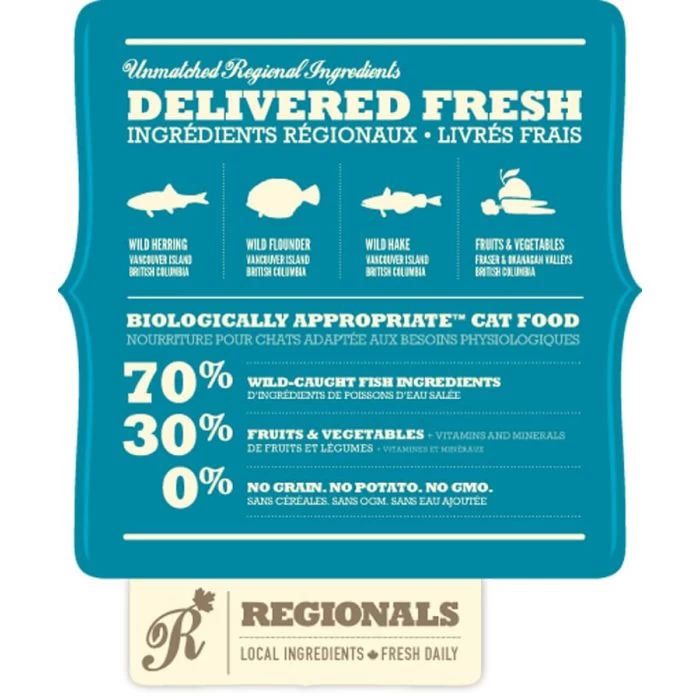 La ricetta ACANA Pacifica è ricca di aringhe selvatiche, sgombri, passere, naselli e scorfani in proporzioni di pesce intero, organi e ossa. Per fornire al tuo gatto una dieta completa vicina al suo istinto naturale.