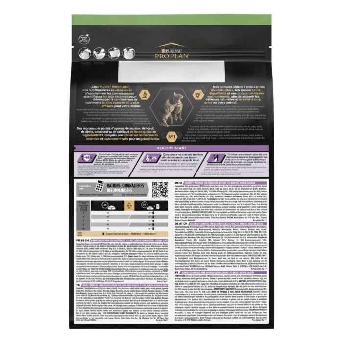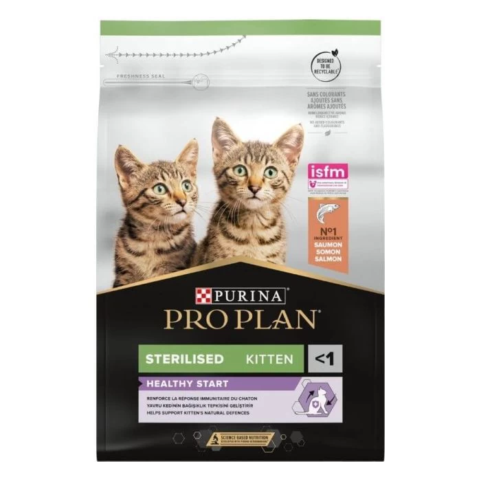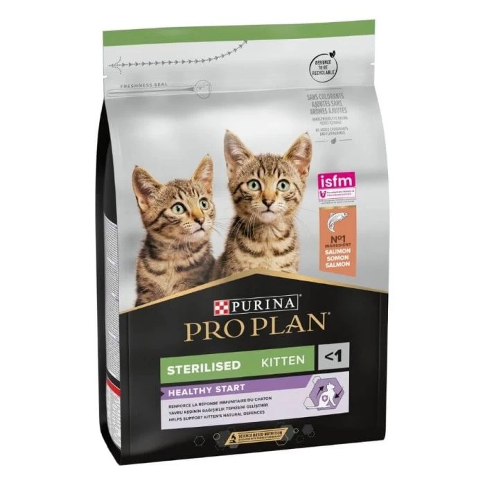 Purina Proplan Sterilised Kitten con Optistart è un alimento completo per gattini sterilizzati di età inferiore a un anno. Questo alimento aiuta a rafforzare le difese naturali del gattino e contiene DHA (acido docosaesaenoico) per favorire una vista sana e uno sviluppo cerebrale sano.