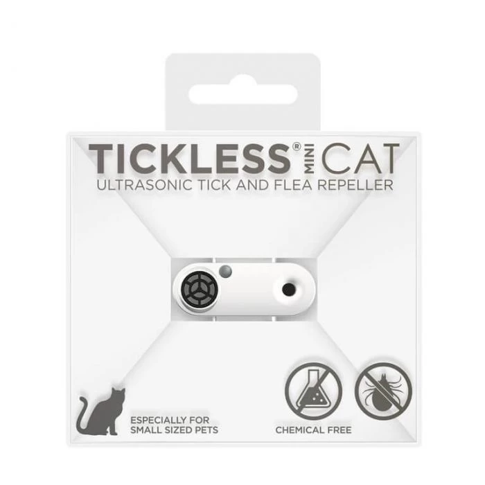 TICKLESS MINI Cat è il più piccolo dei dispositivi a ultrasuoni sul mercato. Il suo design avanzato emette impulsi ultrasonici che sono impercettibili per gli esseri umani o gli animali domestici ma fastidiosi per zecche e pulci, inducendoli ad allontanarsi dal dispositivo.